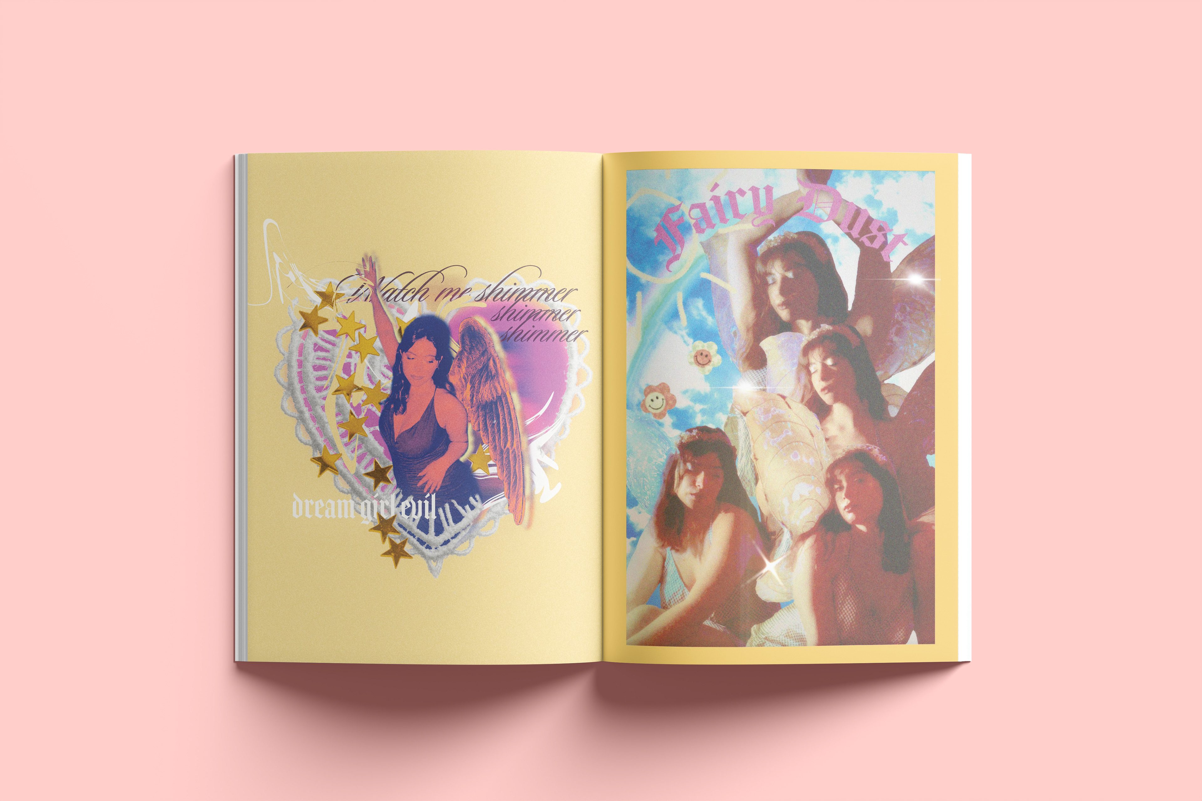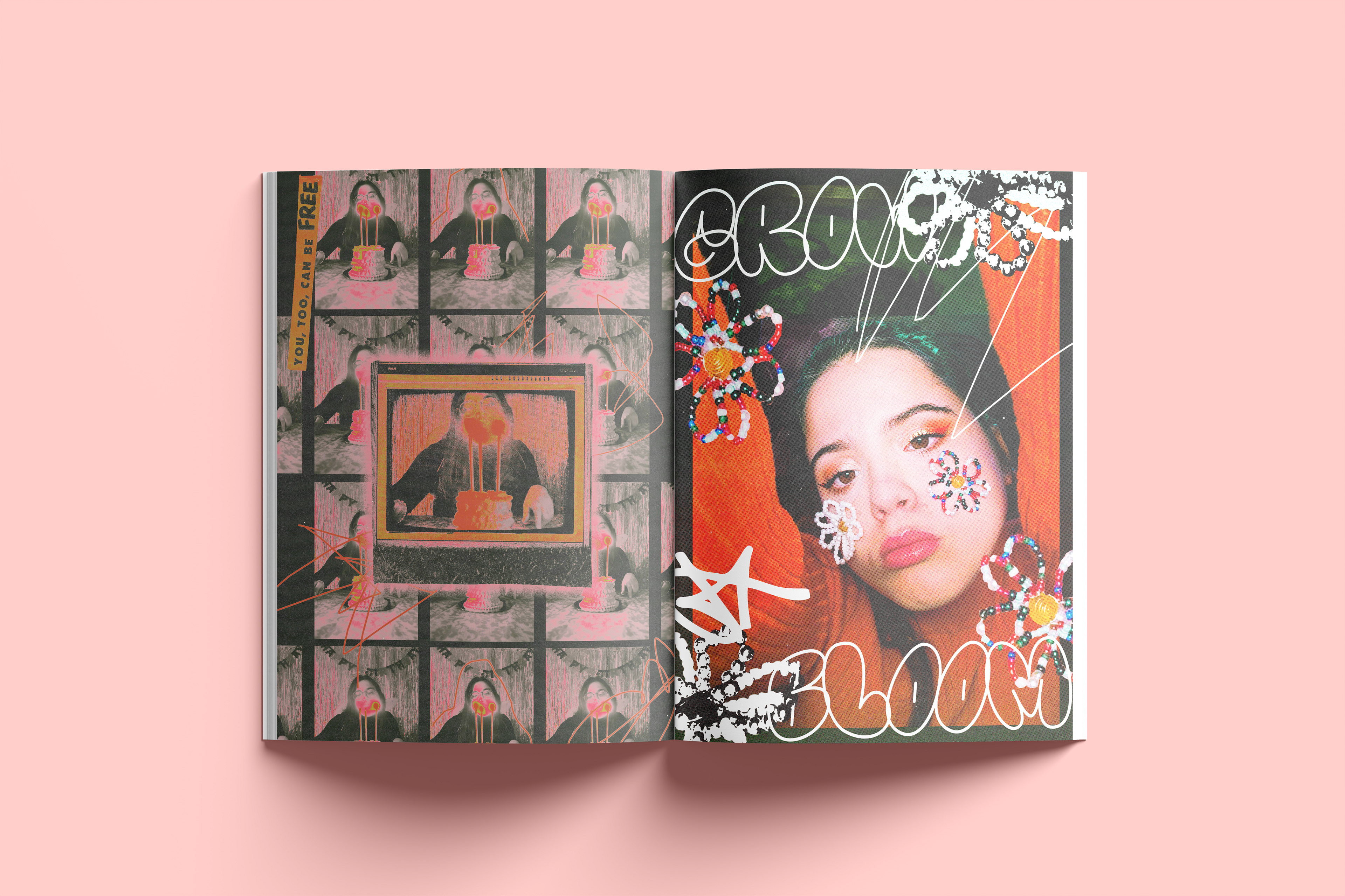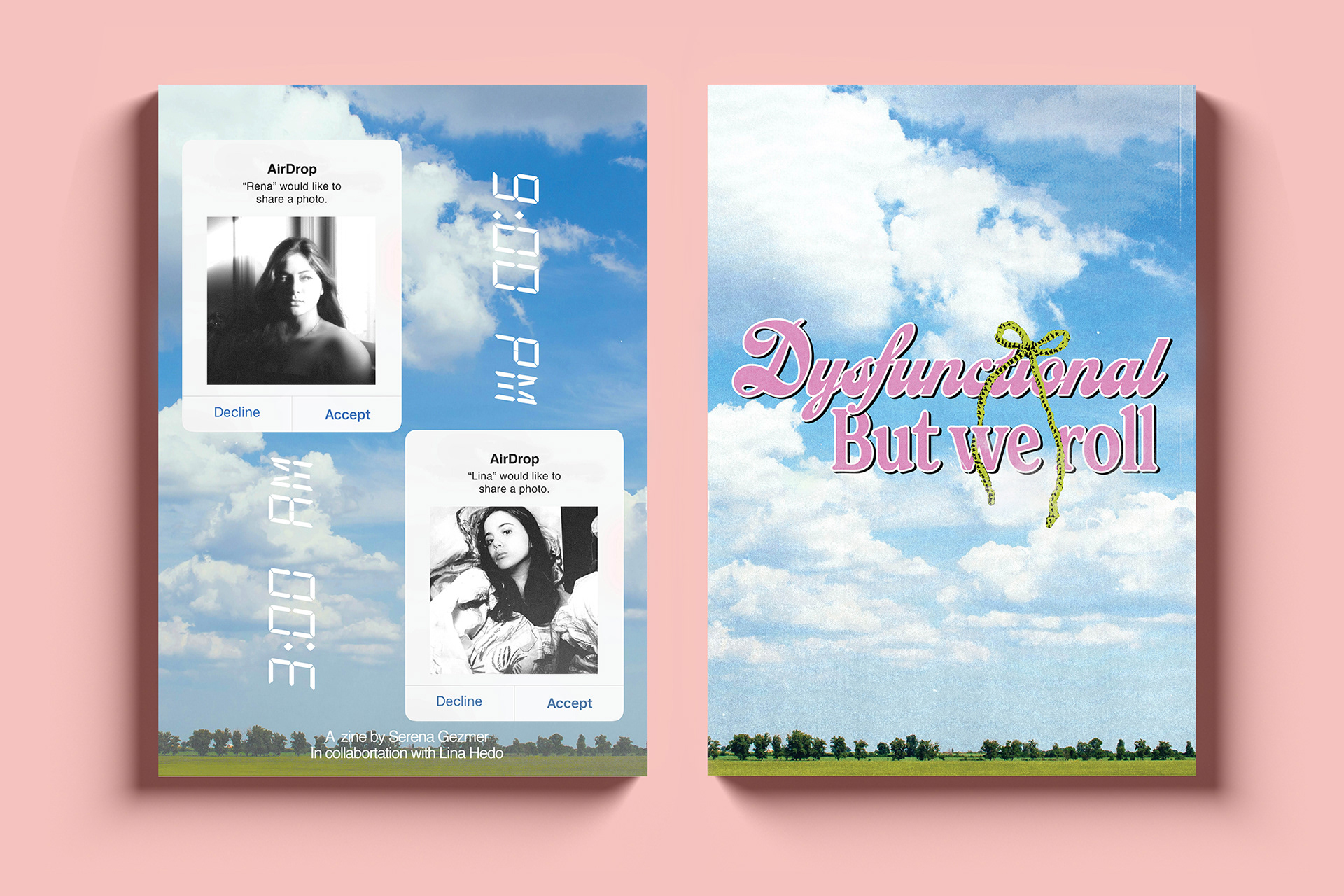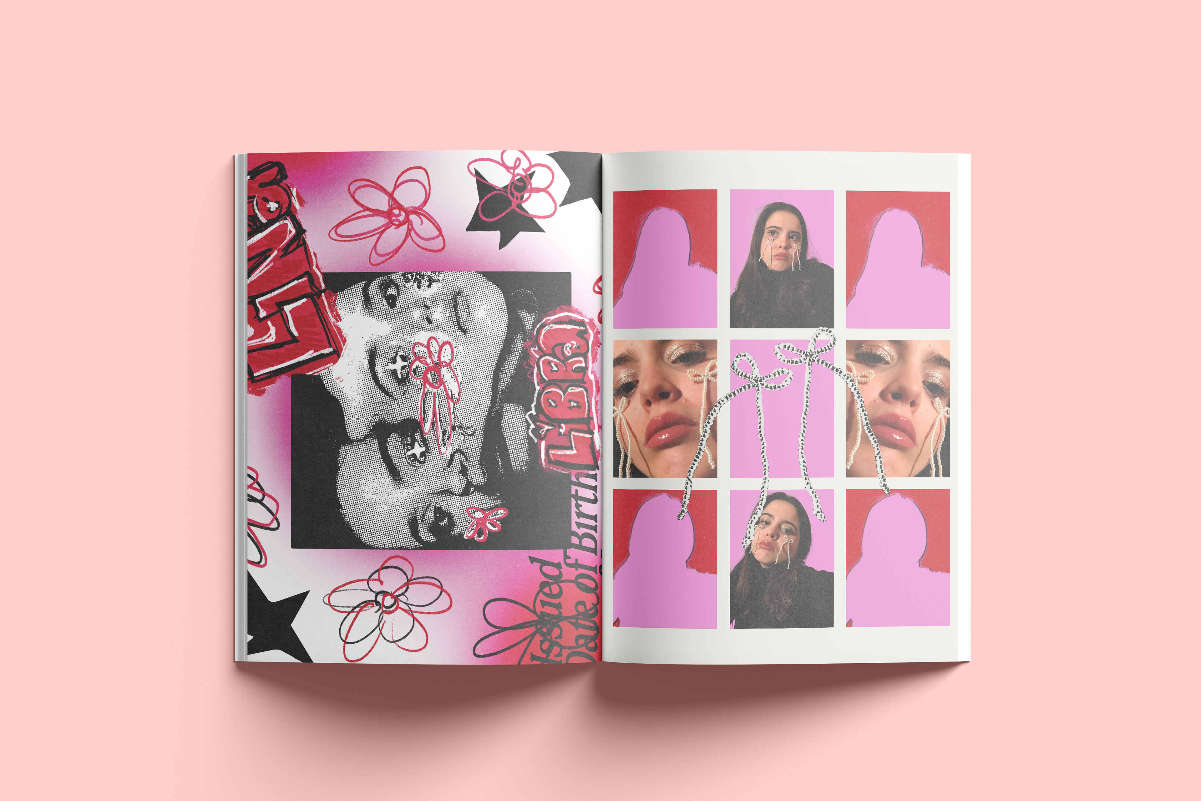A zine was created by me with the collaboration with my friend. We swapped photos of each other and edited them in our styles. I wanted it to feel sort of like a teen magazine