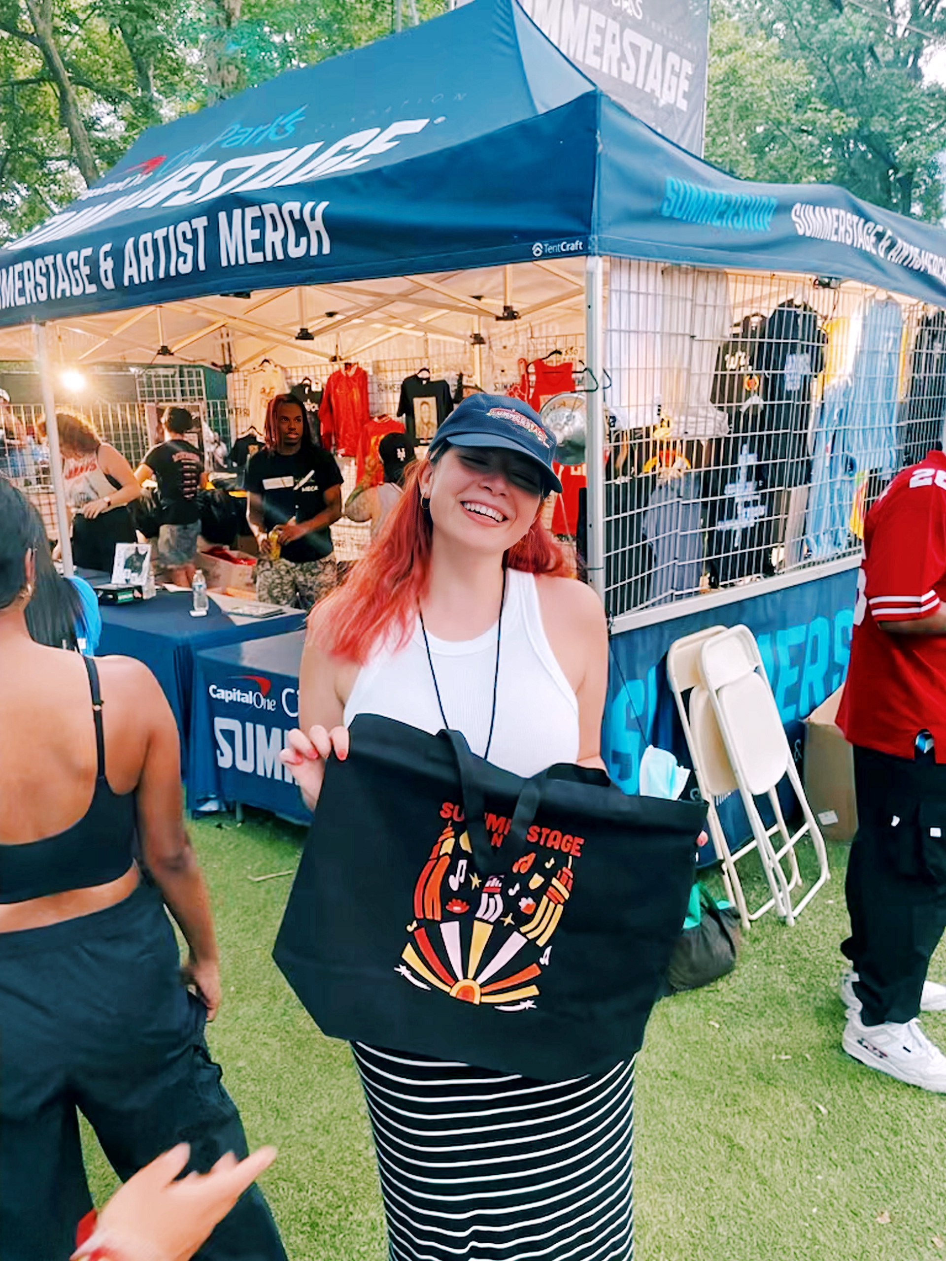 I interned with the City Parks Foundation during the summer and was allowed to create merchandise for their music festival, Summerstage. I made my own design on the baseball cap, and created the layout for the tote bag and paper fan using the 2024 seasonal art created by Eugenia Mello.